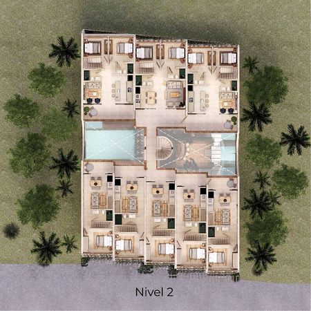 Estos nuevos estudios y departamentos de 1 y 2 recámaras, así como los penthouses, son perfectos para rentas vacacionales o como su propio hogar en el paraíso. Están diseñados en un estilo vanguardista propio de Tulum y ofrecen diferentes distribuciones y opciones para satisfacer sus necesidades. Todos los departamentos cuentan con una distribución eficiente de concepto abierto y disfrutan de mucha luz natural. Los estudios tienen balcones privados, las unidades de 2 recámaras tienen terrazas privadas con jacuzzi, y los lujosos penthouses tienen rooftops privados con albercas pequeñas.