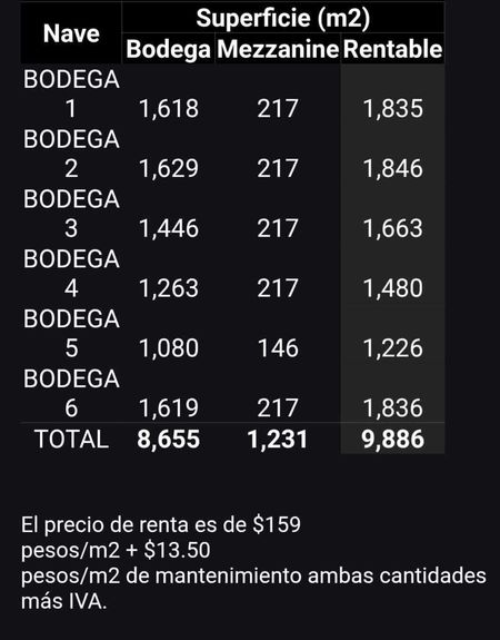 Bodega industrial que se puede subdividir en 6 espacios desde 1,080 m2 a 1,618 m2 o completa 9,886 m2