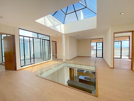 La casa de 363 mts distribuida en dos plantas, cuenta con doble altura y un domo central que brinda una agradable sensación de bienestar a todas las áreas. En la planta baja cuenta con