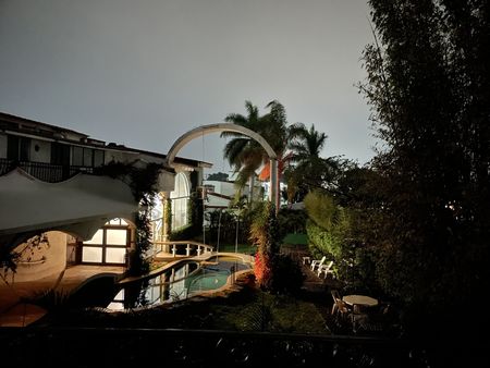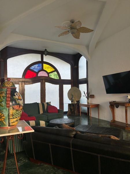 Recámara principal Doble altura, fresca e iluminada, enorme área para cama King Size y 2 camas Individuales, desayunador o espacio para sillones, escritorio, etc., para camas extras en tapanco para cuidador o enfermera, cocineta, amplio baño doble lavabo y closets, espejos, (el baño de la principal se está remodelando, ya se tienen todos los muebles nuevos), ventiladores de techo y acceso directo a jardín, jacuzzi (en instalación) y alberca grande.