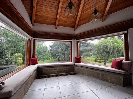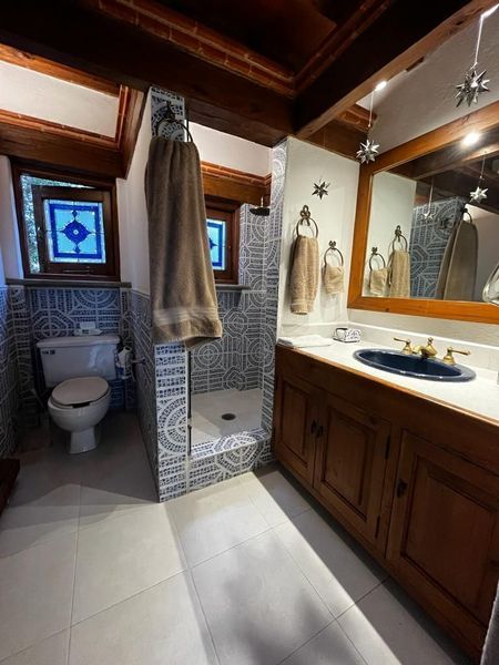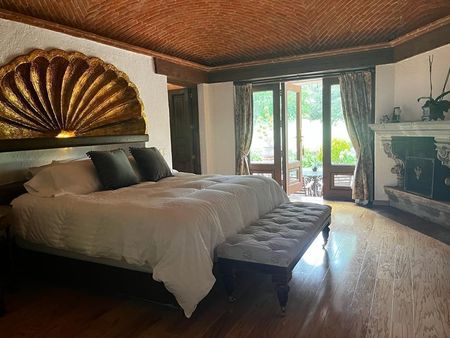Consta de 4 recámaras, la principal con chimenea, vestidor y baño, segunda recámara con vestidor y baño , la tercera recámara con tapanco, vestidor y baño . En la planta alta hay otra cuarta recámara con closet, baño y terraza con vista al campo,estudio y sala de tv.