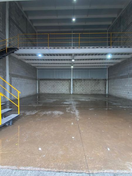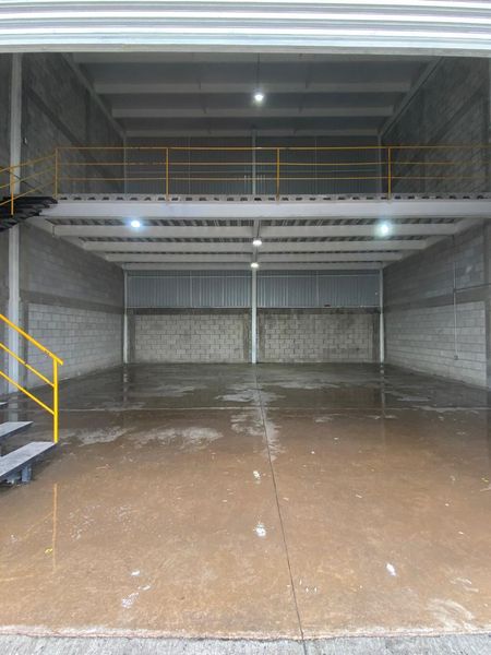 Bodega con mezzanine, entrada para camión torton, piso MR‑38 y trifásica. ¡Lista para operar!