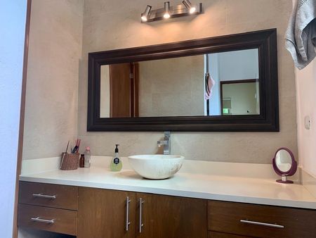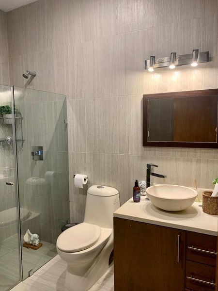 Recámara secundaria con closet vestidor y baño propio con aires acondicionado
