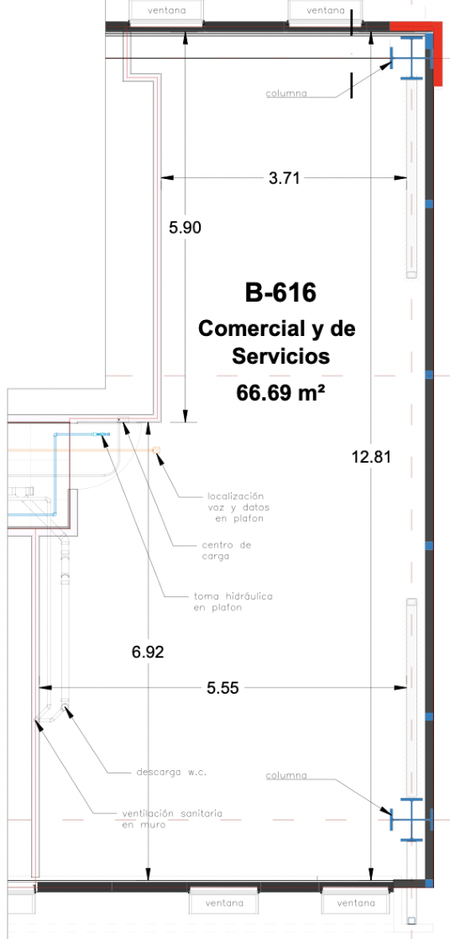 - Muros interiores de tablaroca, ideales para una rápida y flexible adecuación.
