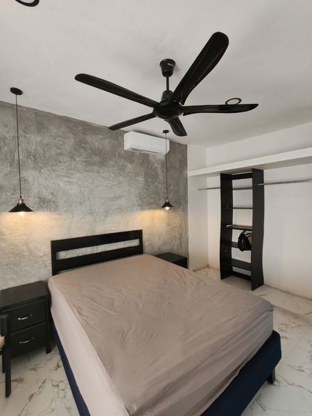 El departamento se encuentra climatizado, totalmente amueblado y equipado con camas, sala de 3 piezas, clósets estilo abierto, refrigerador, parrilla a gas, cocina con gabetas, boiler, climas, ventiladores, cortinas, pantalla, lámpara, asientos, decoración, etc..