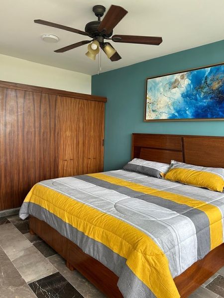 RECAMARA SECUNDARIA CON CAMA MATRINONIAL CLOSET , VENTILADOR , CLIMA Y BALCON