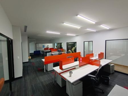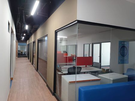 • La Oficina esta acondicionada con: Pisos, alfombras, divisiones y puertas de vidrio.