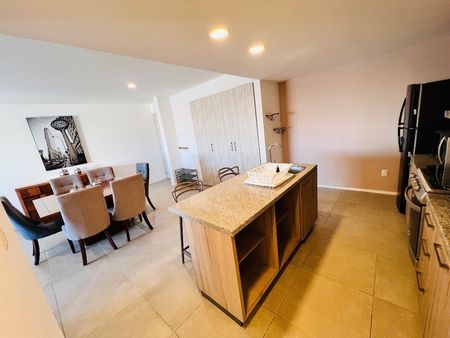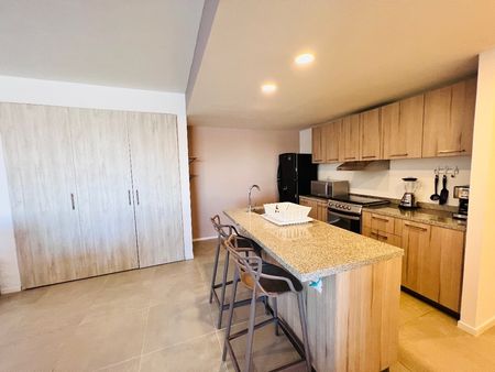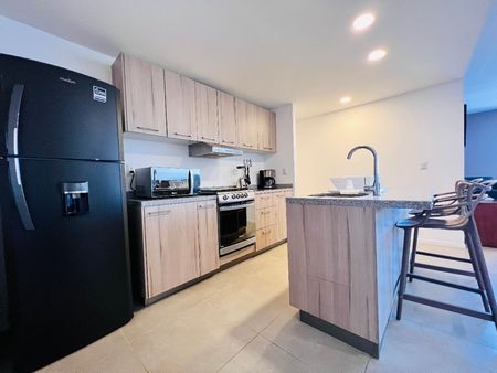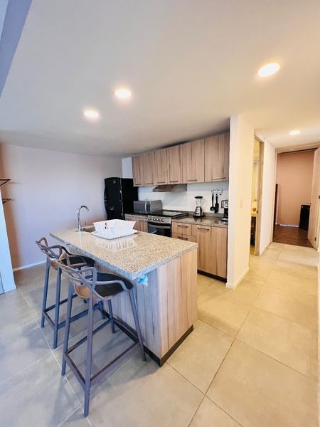 El departamento cuenta con 3 recamaras, 2 baños completos, estancia amplia, cocina integral equipada con isla.