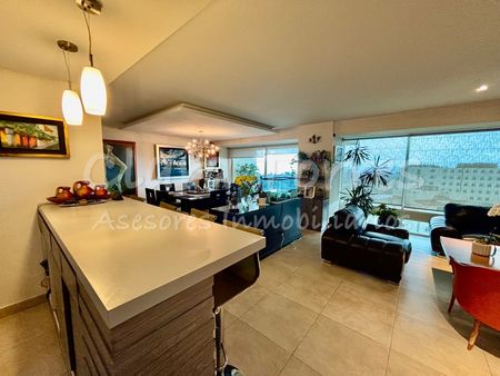 El departamento ubicado en un piso alto, cuenta con una excelente distribución de 280m2 y una terraza de 7m2 con vista a la ciudad. Es un elegante espacio con acabados de lujo, cocina integral, bar, oficina, family con mueble de TV, tres amplias recamaras ventiladas e iluminadas, cada una con baño completo y clóset, la principal con walking closet, área de lavado, cuarto y entrada de servicio, 4 lugares de estacionamiento y amplia bodega.