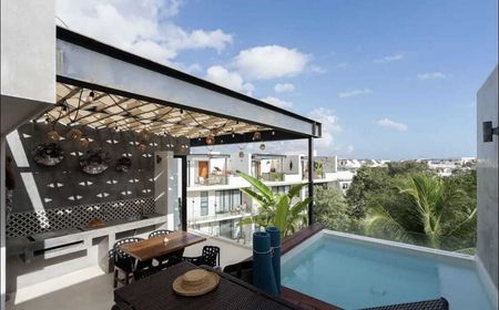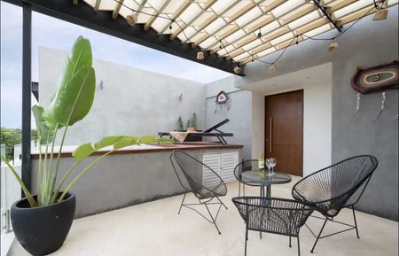 En la parte superior tiene alberca privada con asoleadero, área de de bbq y baño.
