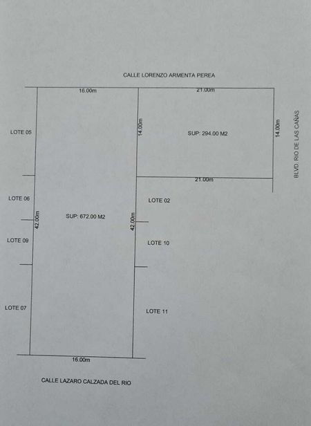 16 metros de frente x 42 metros de fondo