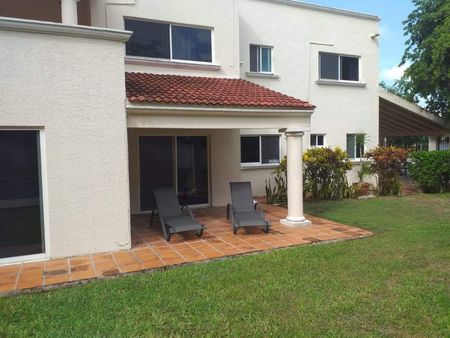 4 recamaras ( una en planta baja), 3.5 baños, estudio, aire acondicionado en habitaciones , sala comedor, terraza, cocina integral, cuarto de lavado, cuarto de servicio con baño completo, estacionamiento techado para dos autos, pet friendly, vigilancia 24/7. (sin amueblar).