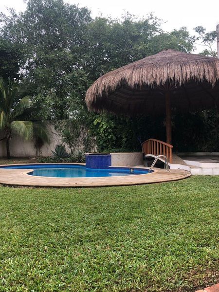 820m2 de terreno, 400m2 de construcción, amplios jardines, palapa y alberca.
