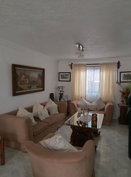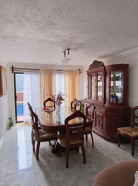 En la planta baja, disfruta de la amplitud de la sala-comedor, una cocina totalmente equipada y una oficina con baño. También cuenta con una recámara o cuarto de TV con baño completo, medio baño y una relajante alberca con calentador solar. La terraza, perfecta para momentos sociales, dispone de un baño completo para mayor comodidad.