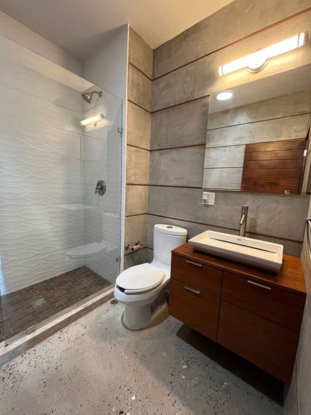 Espacio abierto con baño completo, ideal como oficina, estudio o recámara adicional, equipado con mini split