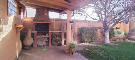 La casa también cuenta con un amplio patio con área social, ideal para reuniones al aire libre, con asador y horno de leña para esos momentos especiales. Y si eso fuera poco, tiene riego automatizado, sistema de alarma y gas natural, todo para brindarte mayor seguridad y comodidad.
