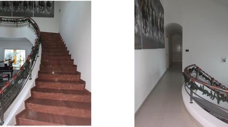 • Escalera central de mármol rojo con