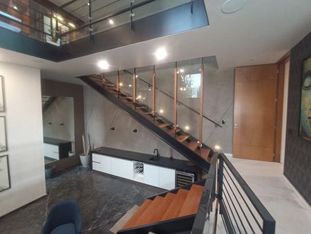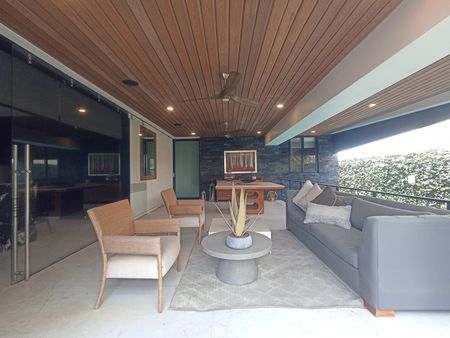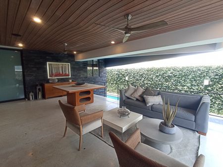 - Planta Alta: Biblioteca, recámara principal a doble altura con baño integrado y vestidor en dos niveles, acceso a Roof Garden techado, dos recámaras adicionales con vestidor y baño, área de servicio con lavandería, patio de tendido, cuarto de servicio y acceso a un tercer nivel con muro verde y terraza pergolada.