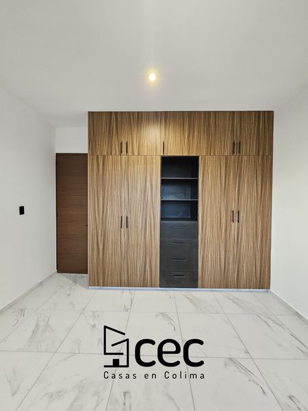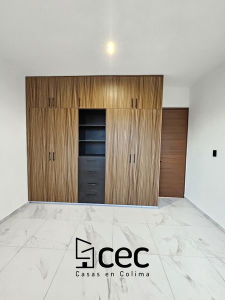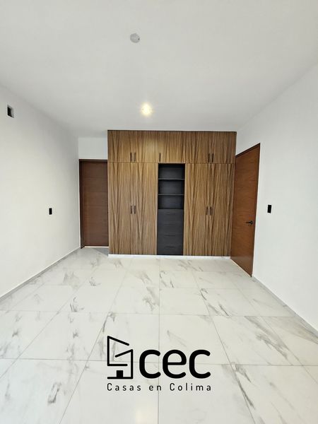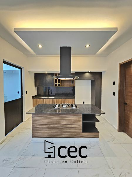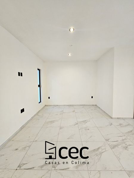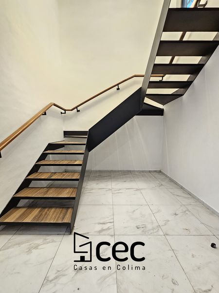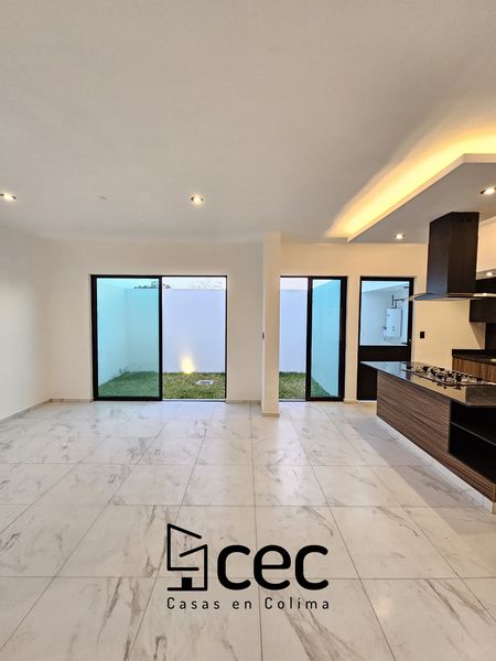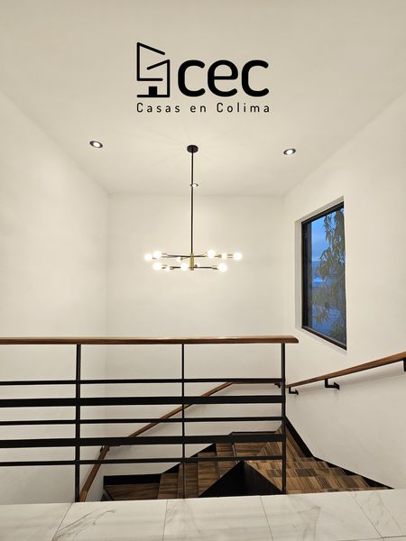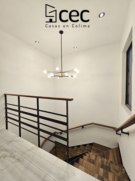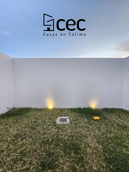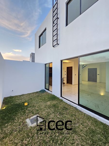 Residencia de 2 plantas con acabados de lujo, sala, comedor, 3 recámaras con closet, recámara principal con baño, 2.5 baños, cochera para 2 autos con portón, cocina integral equipada, doble altura en escalera y recibidor, patio trasero con pasto, patio de servicio, iluminación led.