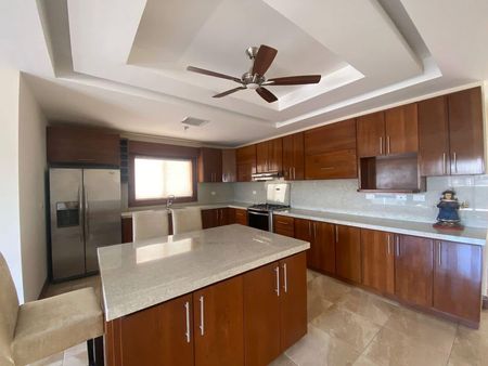 Cocina integral con isla y cubierta de cuarzo