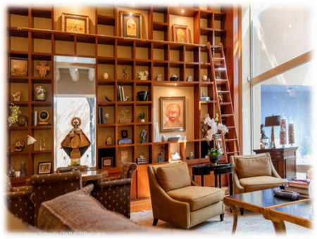 Doble sala con chimenea y biblioteca