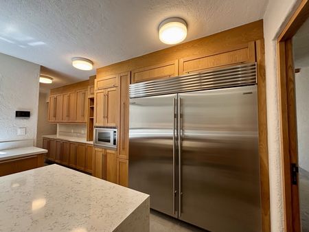 La cocina integral, equipada con tecnología de punta y un diseño funcional, incluye un práctico y encantador desayunador, perfecto para comenzar el día en un ambiente familiar y luminoso.