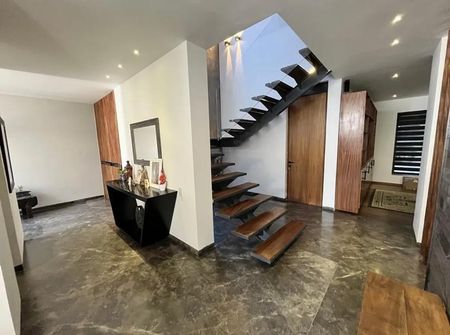 La residencia cuenta con un diseño arquitectónico moderno distribuido en 2 niveles que comprenden un terreno de 450 m² y una construcción de 600 m². Ofrece 4 recámaras, cada una con su baño completo, además de un medio baño para mayor comodidad. La propiedad dispone de 6 espacios de estacionamiento, ideal para familias de gran tamaño o quienes requieren de visitas frecuentes.