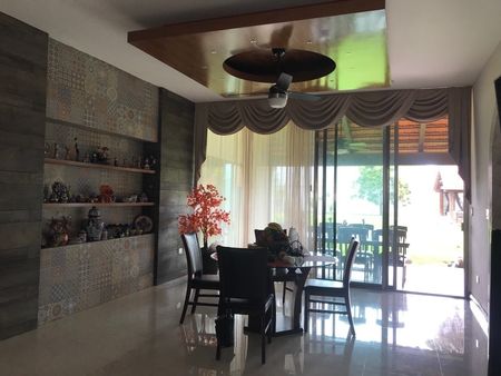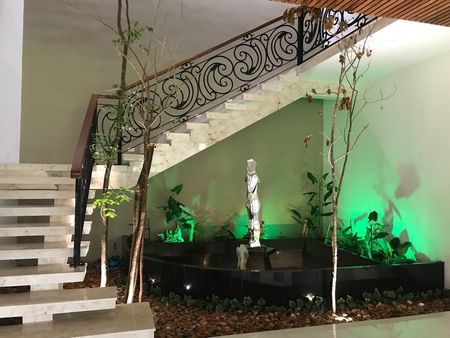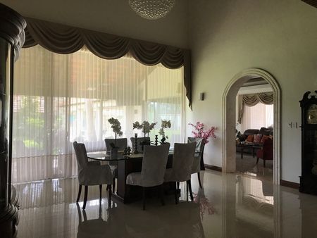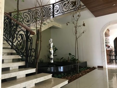 Cochera techada para 4 autos , hermosa recepción con acceso a dos salas con techos a 4m de altura, lujosos plafones con iluminación de tres tipos. Amplio comedor principal con capacidad para 12 personas a doble altura , con amplios ventanales corredizos y hermosa vista terraza y jardines.