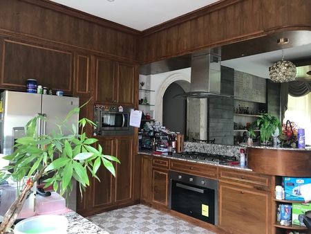 La cocina se encuentra totalmente equipada con fina madera de Tzalam ( madera dura de la región ), con mesetas de granito, alacena, equipada con estufa, campana, horno y amplio ante-comedor.