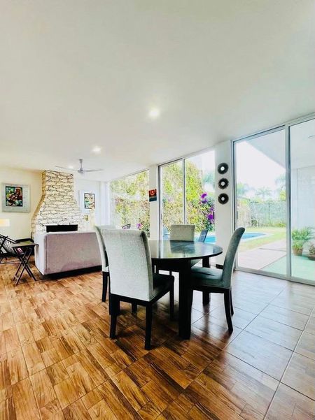 Esta elegante propiedad de 355 m² de construcción en un terreno de 640 m² ofrece acceso directo al campo de golf de Juriquilla, en una de las zonas más exclusivas de Querétaro. Con un diseño moderno, iluminación natural y espacios pensados para el confort y la funcionalidad, es ideal como hogar familiar o como inversión de alta rentabilidad. Cuenta con 3 recámaras con baño y balcón, 2 estudios versátiles, cocina con isla, sala con chimenea, jardín de 140 m² y estacionamiento para 3 autos. A solo 4 años de construcción, ofrece el equilibrio perfecto entre estilo contemporáneo y vida relajada en contacto con la naturaleza.