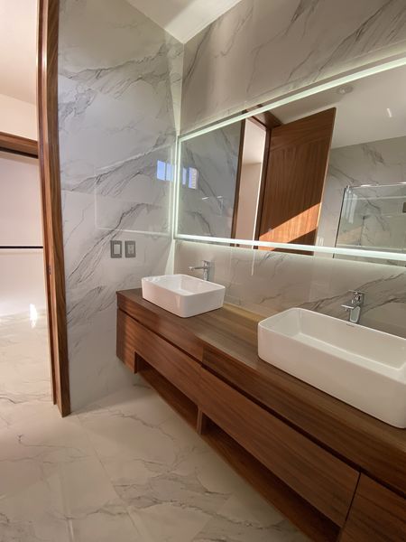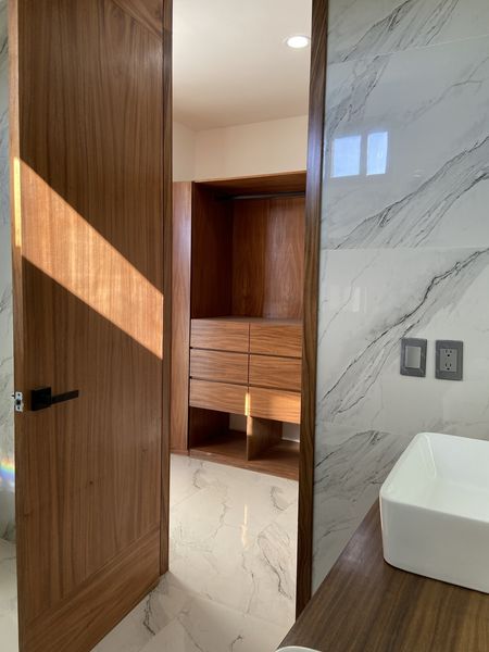 1 Recámara principal con su baño completo y vestidor, con acabados de madera de parota