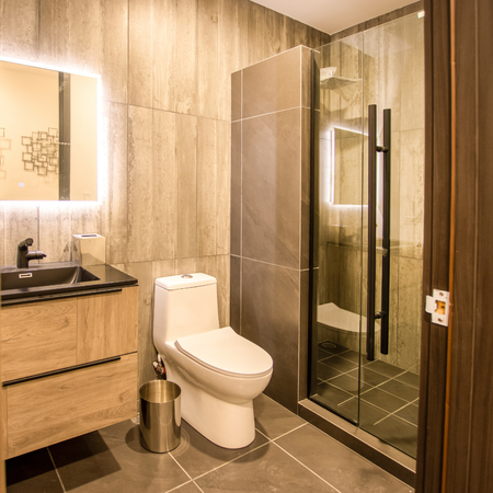 • Equipados con cocina, refrigerador, microondas, campana, estufa, centro de lavado y calentador de agua.