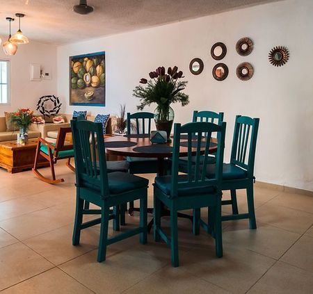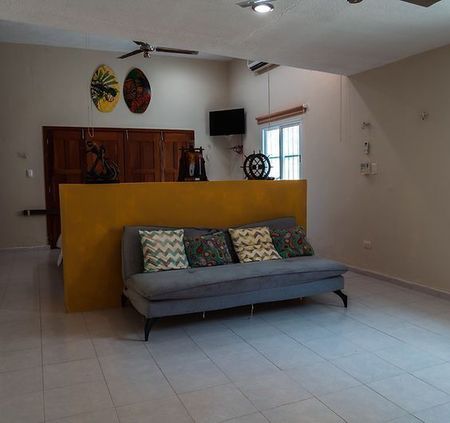 La casa en las playas de Sisal, Yucatán! Nuestra encantadora casa vacacional ofrece una estancia inolvidable. capacidad para 10 personas, es perfecta para unas vacaciones en esta hermosa ubicación costera. Disfruta de 3 amplias recámaras con baño, aire acondicionado y terrazas. Relájate en el jardín, disfruta de la piscina y las áreas sociales. La cocina equipada, sala comedor y estacionamiento para 3-4 autos