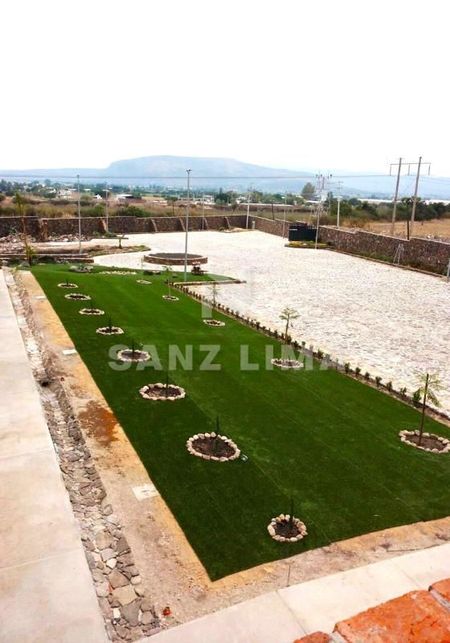 * Estacionamiento con pavimento de piedra para