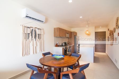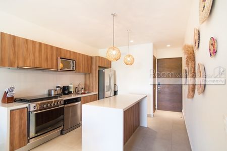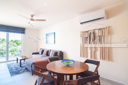 Este complejo de estilo resort ofrece amenidades exclusivas, que incluyen dos albercas comunitarias, un gimnasio completamente equipado, un estudio de yoga, un sendero para caminar, un nuevo club de playa privado a pocos minutos a pie del departamento y precios con descuento en el golf y el TAO Wellness Center, una parte integral de la comunidad. Los residentes e invitados también tienen acceso a la increíble azotea con vista al océano, que cuenta con una alberca de borde infinito y área de descanso. El edificio de departamentos es seguro y protegido, con un elevador y estacionamiento. Esta área también ofrece acceso confiable a Internet de alta velocidad.