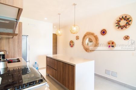 Este luminoso y moderno departamento de 2 recámaras y 2 baños tiene todo lo que podría desear en una casa de vacaciones o una residencia durante todo el año. Cuenta con una cocina completamente equipada con isla y electrodomésticos de alta gama, una sala de estar y comedor llenos de luz, y una lavandería con lavadora y secadora. La sala de estar se abre a un balcón cubierto con vistas al océano y a la selva. Este es un lugar encantador para disfrutar de café por la mañana o una copa de vino por la noche. Este departamento tiene pisos de cerámica y acabados de alta calidad que son duraderos y fáciles de mantener. Se entrega completamente amueblado y listo para habitar, con ventiladores de techo, aire acondicionado, un televisor inteligente Sony, un dispositivo de transmisión Roku, cerraduras electrónicas y un purificador de agua de ósmosis inversa.