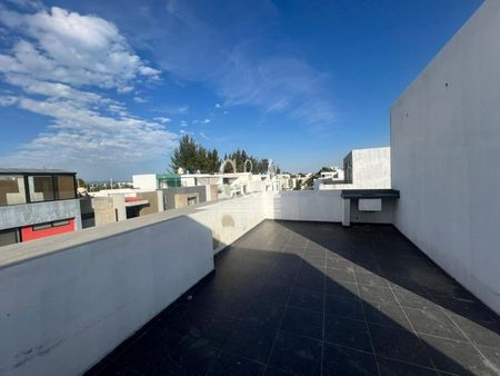 Tres niveles cochera, dos autos, estudio, medio, baño, sala, comedor, cocina integral, terraza, tres recámaras, cada una con su clóset, vestidor y su baño y en el Roof cuarto de servicio y área de lavado y área social con tarja