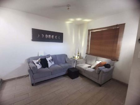 TOTALMENTE AMUEBLADA Y EQUIPADA. 2 RECÁMARAS, 1 BAÑO 1/2, COCINA INTEGRAL CON ESTUFA Y REFRIGERADOR, PERSIANAS A/C, ÁREA DE LAVADO CON LAVADORA Y BOYLER, PATIO TRASERO BARDEADO, COCHERA.