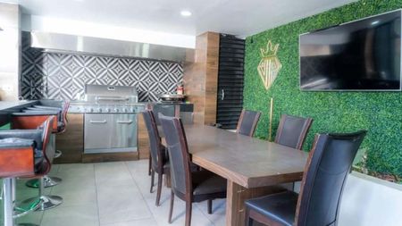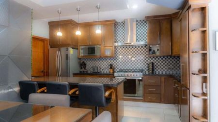 Te presentamos esta propiedad de 2 niveles con finos acabados, perfecta para familias que buscan comodidad y estilo, destacando entre sus amenidades que cuenta con un área de convivencia con asador equipado, aire acondicionado y pantalla.