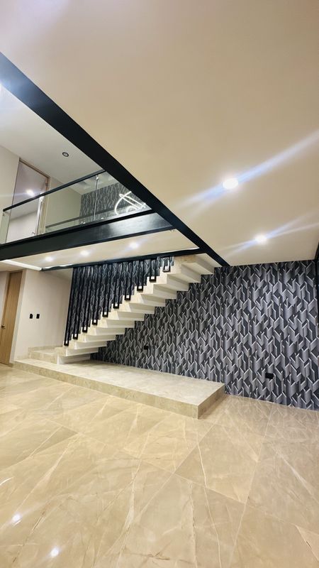Recibidor y sala con doble altura