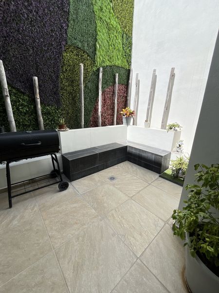 Cochera para dos autos y entrada peatonal Medio baño