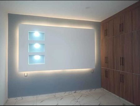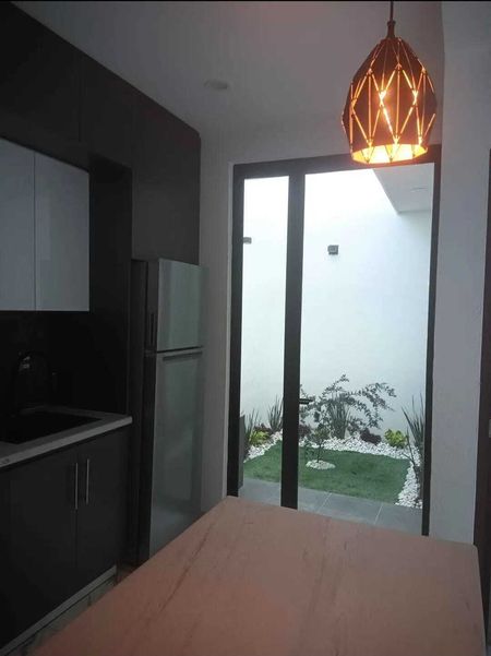 En Planta baja cuenta con UNA RECAMARA CON BAÑO COMPLETO, además de Cochera Doble, Aljibe, Sala- comedor a doble altura, Cocina integral YA EQUIPADA con horno de gas, horno de microondas, estufa, campana y refrigerador, Jardín.