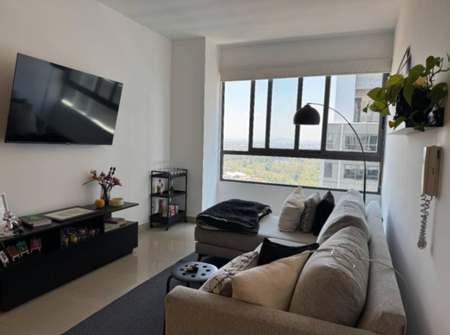 Departamento exterior bien iluminado ubicado en piso 15. Cuenta con dos recámaras, dos clósets, dos baños completos,uno se encuentra dentro de la recámara principal, sala, comedor, cocina integral con barra desayunadora, área de