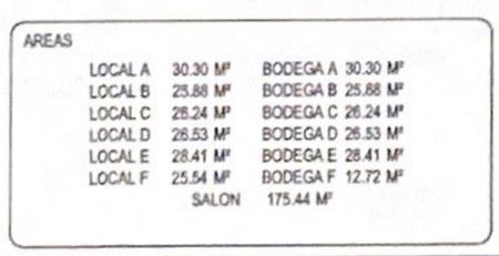 EL EDIFICIO COMERCIAL CONSTA DE 175 M2, DISTRIBUIDO EN 3 NIVELES, EN PLANTA BAJA 6 LOCALES COMERCIALES, EN PLANTA ALTA 1 BODEGA PARA CADA LOCAL, Y EN EL TERCER NIVEL TIENE 1 SALÓN DE USOS MÚLTIPLES.