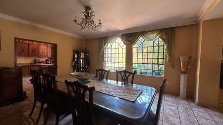 Comedor para 10 personas con ventanales con vista a patio
