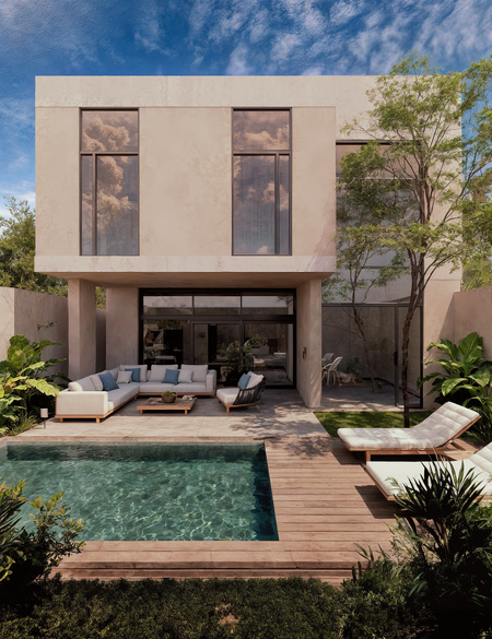 Experience modern luxury living in Tulum with these exceptional 3-bedroom homes in Ahimsa, the most private enclave within the coveted Selva Zama neighborhood.