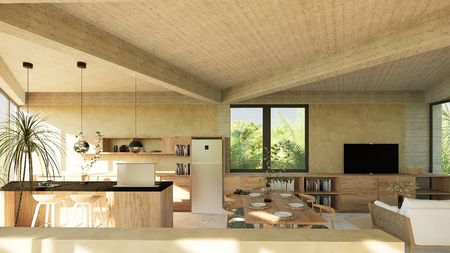 Plafones: Concreto armado con textura de tablas
