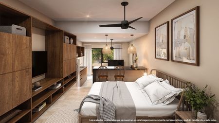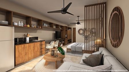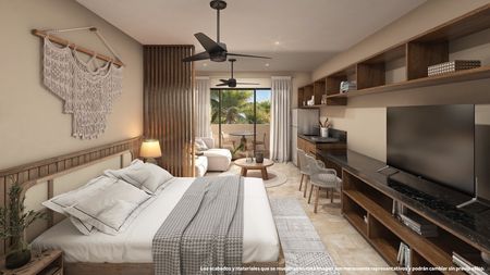 Estos nuevos estudios son ideales para rentas vacacionales o como su propio hogar en el paraíso. Cuentan con una distribución abierta con cocina completamente equipada con mesa, una sala llena de luz y una habitación con un armario empotrado y puertas corredizas para mayor privacidad. La sala de estar y la habitación se abren a un balcón con vistas a la ciudad, perfecto para disfrutar de tu café y desayuno, o una copa de vino por la noche. Estos departamentos tienen pisos de azulejo y acabados de alta calidad que son duraderos y fáciles de mantener. Se ofrecen a la venta sin muebles, pero con ventiladores de techo y aire acondicionado.