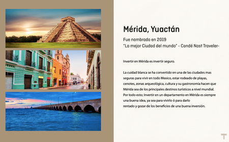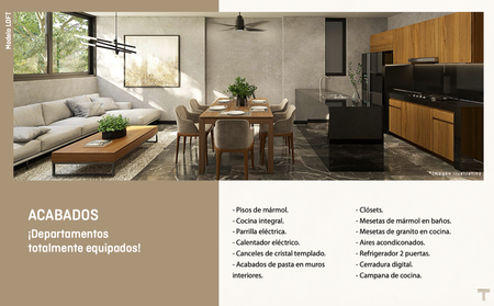 Los departamentos se entregan totalmente equipados y con los mejores acabados y materiales. Ubicados estratégicamente en el corazón de Temozón norte, zona de alto crecimiento inmobiliario y comercial lo que asegura una alta plusvalía.