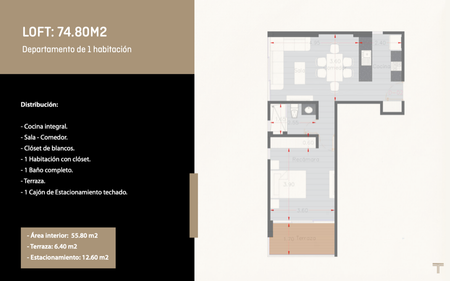 1 Departamento Modelo Loft: 74.80 m2